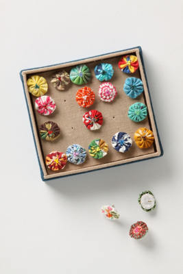 want your yo-yos to look exactly like the anthropologie push pins? string 3 beads and stitch them to the center of your yo-yo before adding the felt to the back.